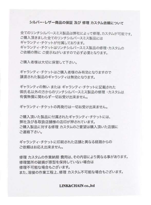 ご購入の際、購入店のみ有効となる「ギャランティーチケット」が発行されます。