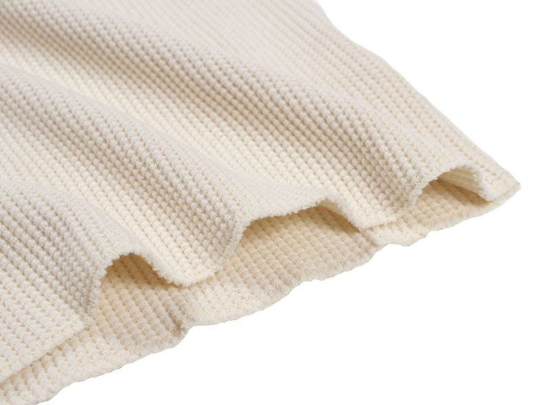 サーマル素材の中では最高の肉厚素材であります。見た目にも分かるほどワッフルの凹凸がハッキリしております。