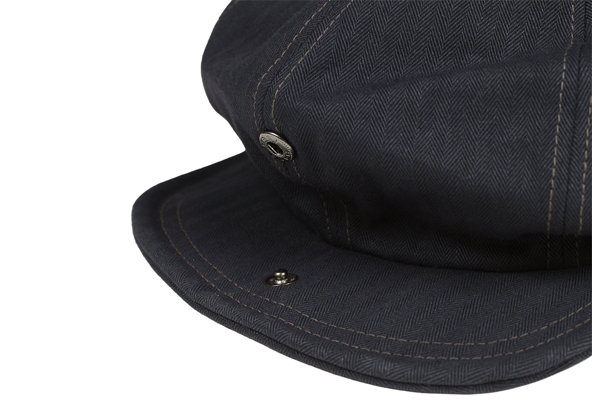 帽体は8枚パネル仕様、ツバにはスナップボタンが付きます。