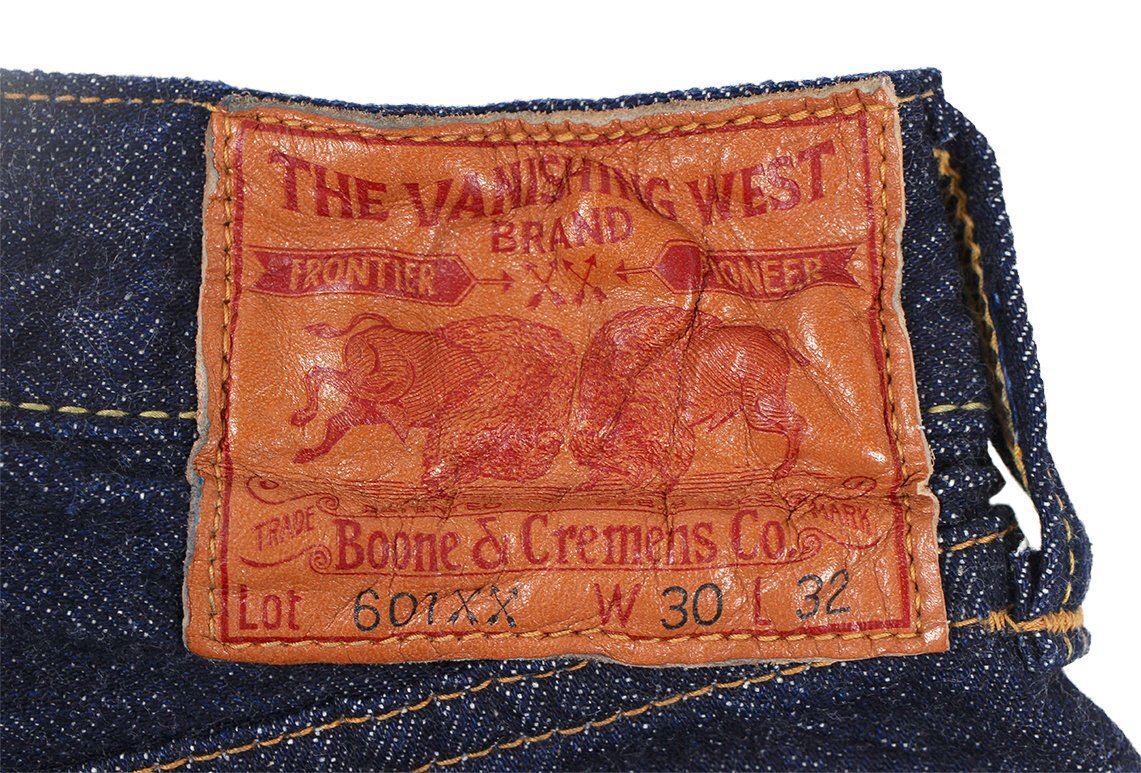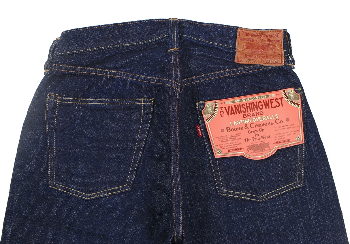 ポケットには片面に”V.WEST”の文字が入った赤タブが付きます。