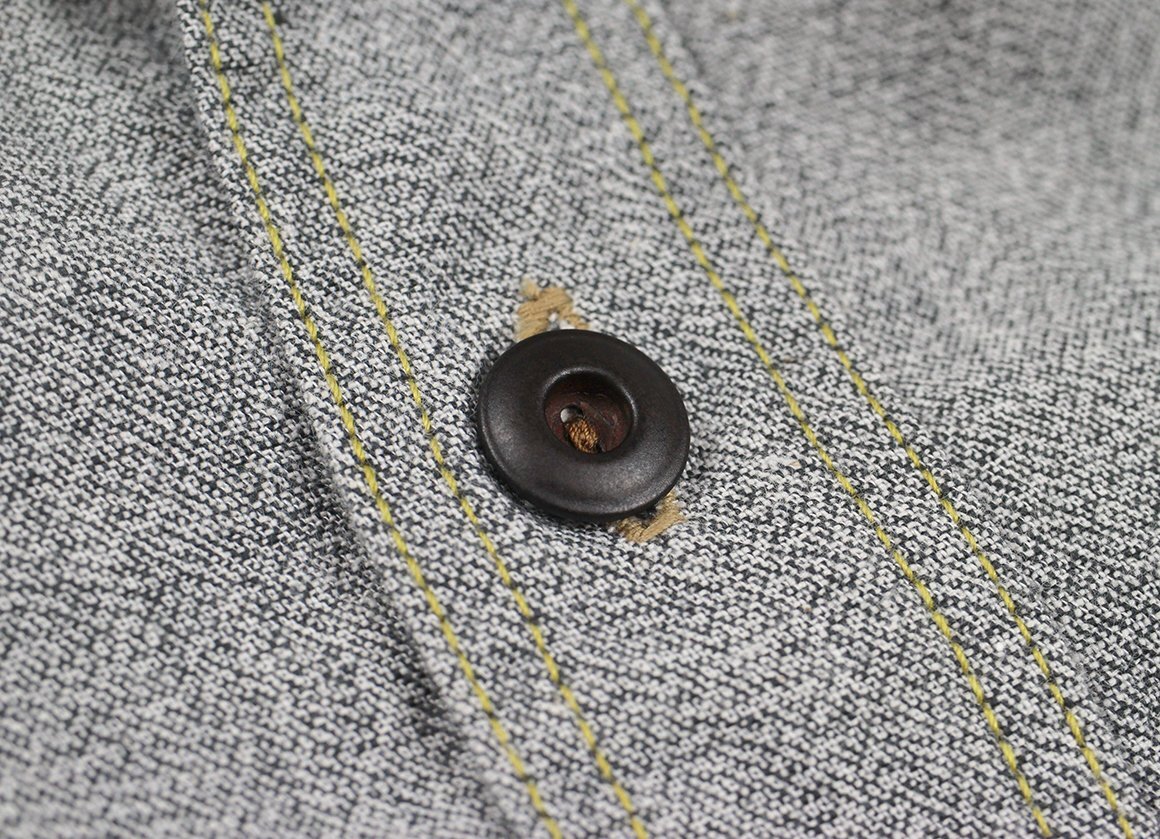 ボタンは鉄を使用、着用していくことで塗装が剥がれ錆びて良い雰囲気になります。