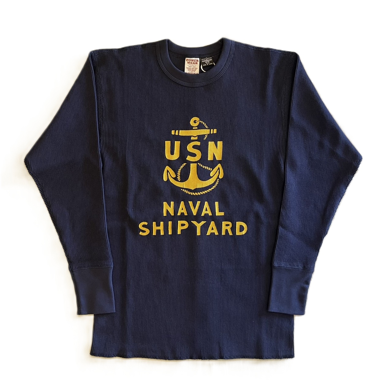 FREEWHEELERS & CO. ["U.S.N. NAVAL SHIPYARD" CREW NECKED THERMAL LONG SLEEVE SHIRT #2535007 DRY NAVY size.S,M,L,XL]