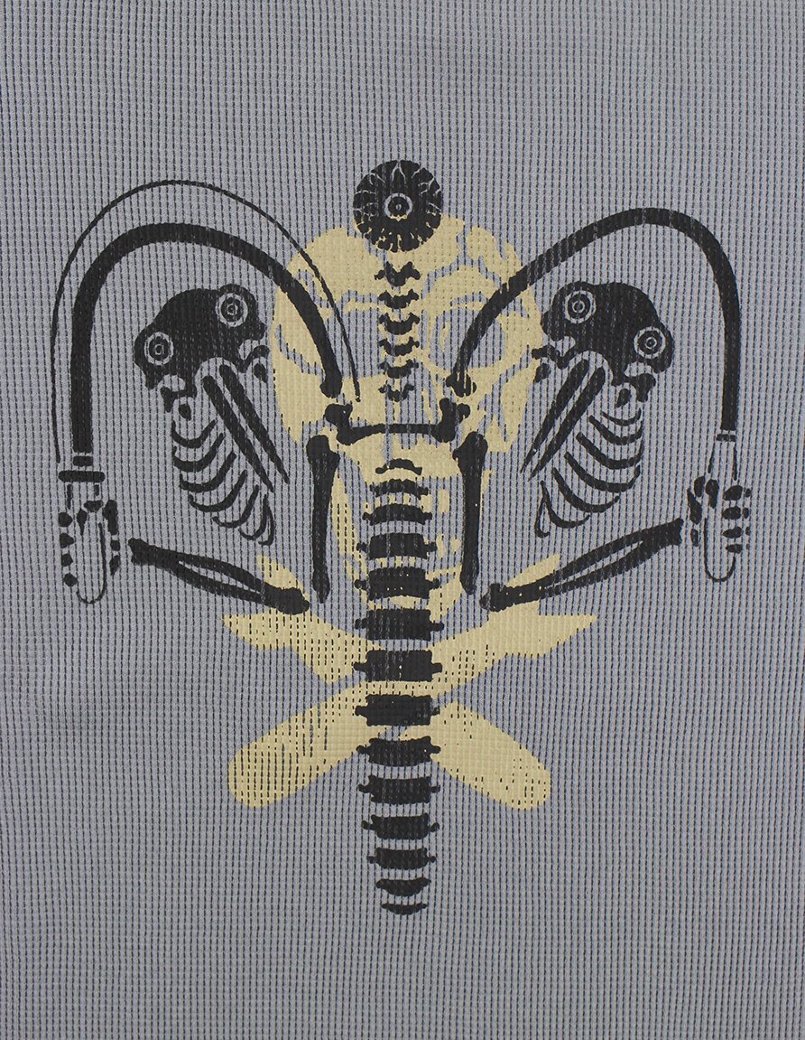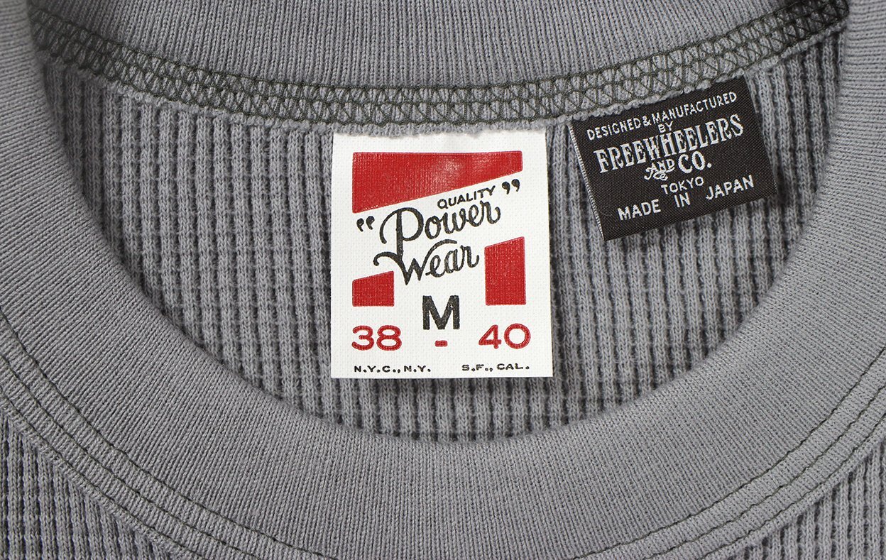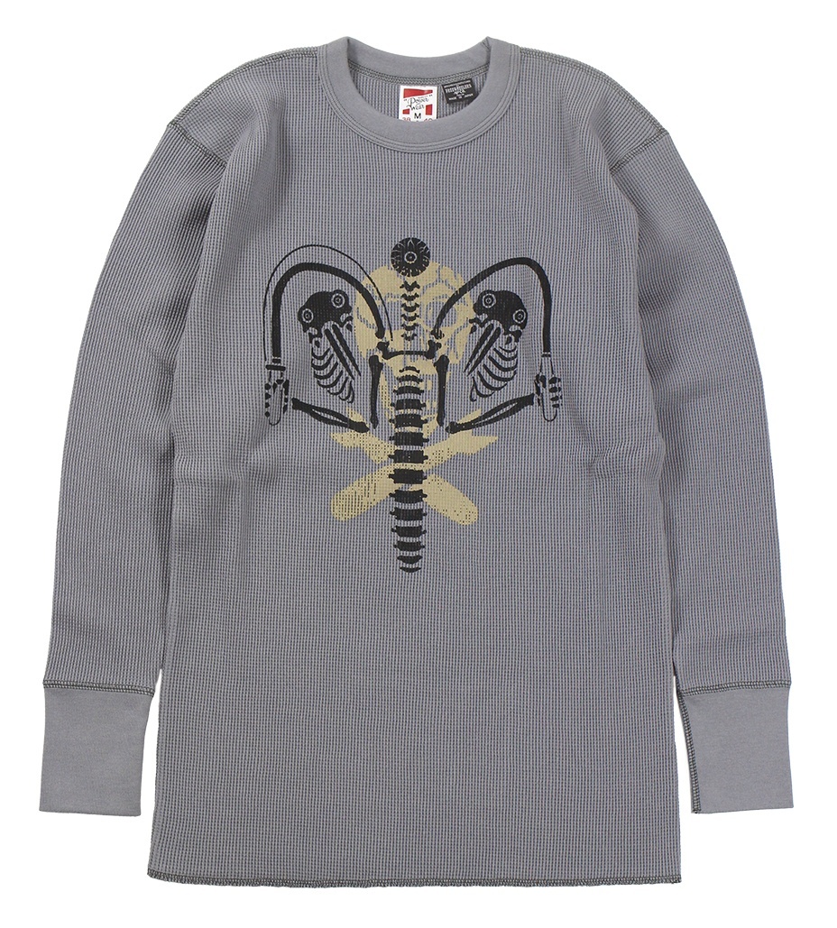 - > FREEWHEELERS & CO. ["KNUCKLE BONES" on "AAF 90thBG 400thBSQ" CREW NECKED THERMAL LONG SLEEVE SHIRT #2535008 MEDIUM GRAY size.XL]