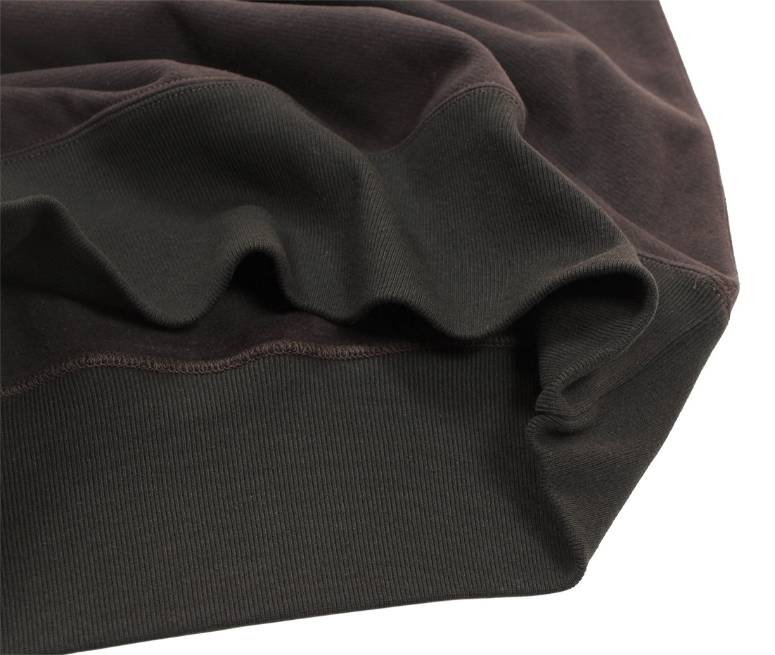 裏起毛のミディアムウェイト生地を使用した、弾力のある柔らかい生地感になります。
