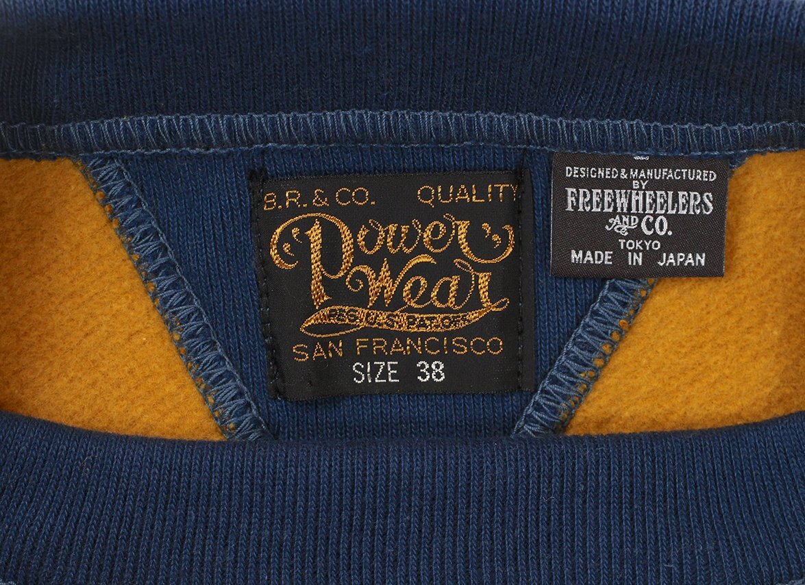 FREEWHEELERS & CO. ["Devil Dog" DOUBLE V SWEAT SHIRT #2534003 OLD GOLD×DEEP BLUEBERRY size.38,40,42,44,46]