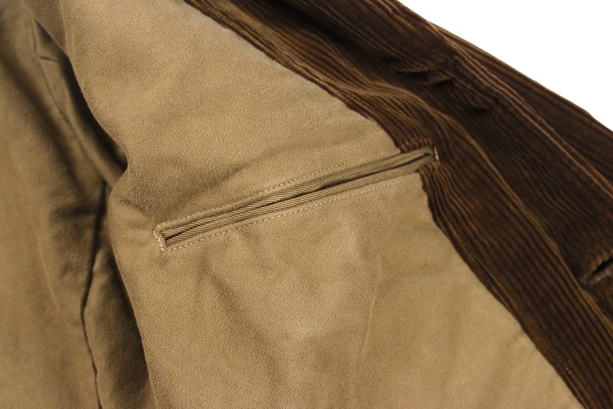 裏地は肌触りの良い起毛されたコットン・モールスキン、袖裏には滑りの良いコットン・ウエストポイント生地を使用しています。