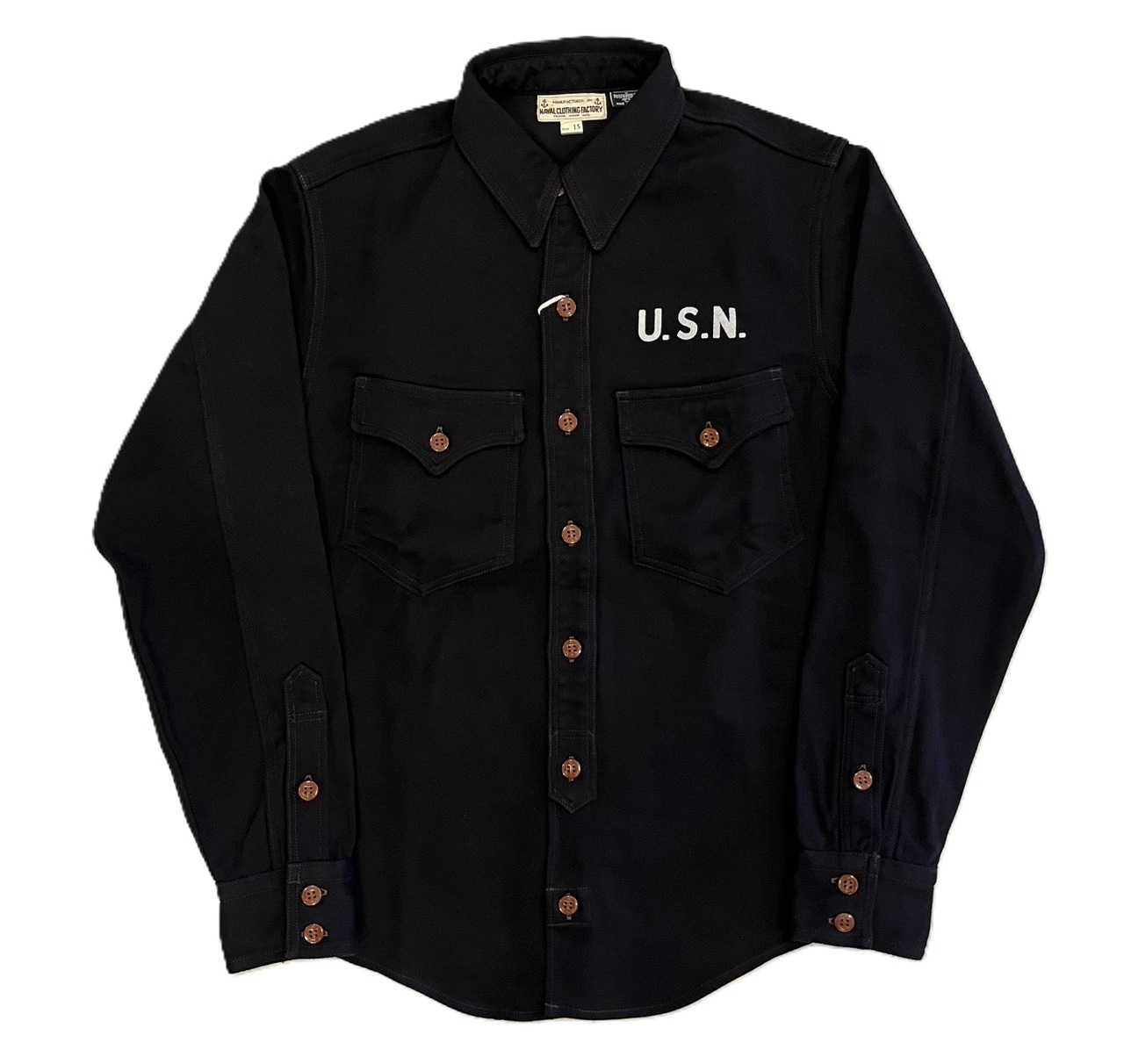 FREEWHEELERS & CO. ["Jolly Rogers CV17" U.S.NAVY UTILITY SHIRT #2533004 DARK NAVY size.14,15,16,17,17 1/2]
