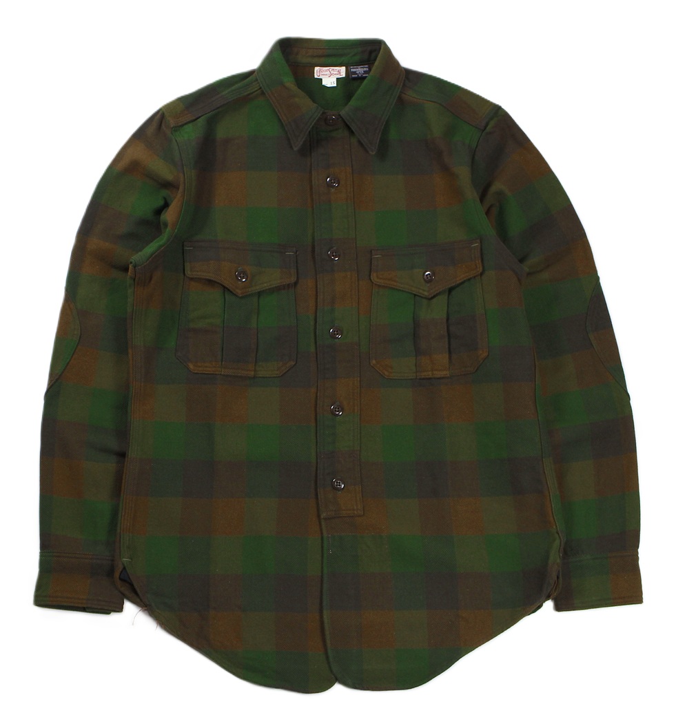 FREEWHEELERS & CO. ["BaldyGus" MECHANIC SHIRT #2533008 BOTTLE GREEN×KHAKI BROWN×DARK OLIVE DRAB size.14,15,16,17,17 1/2]