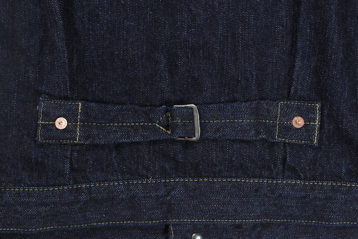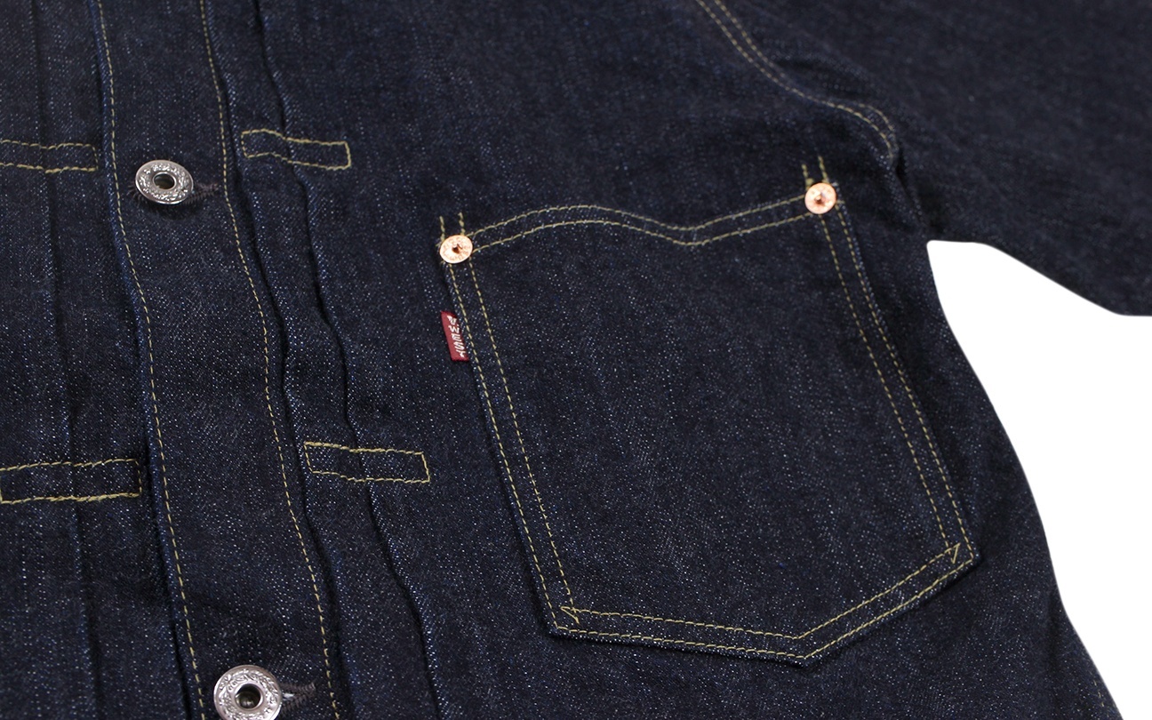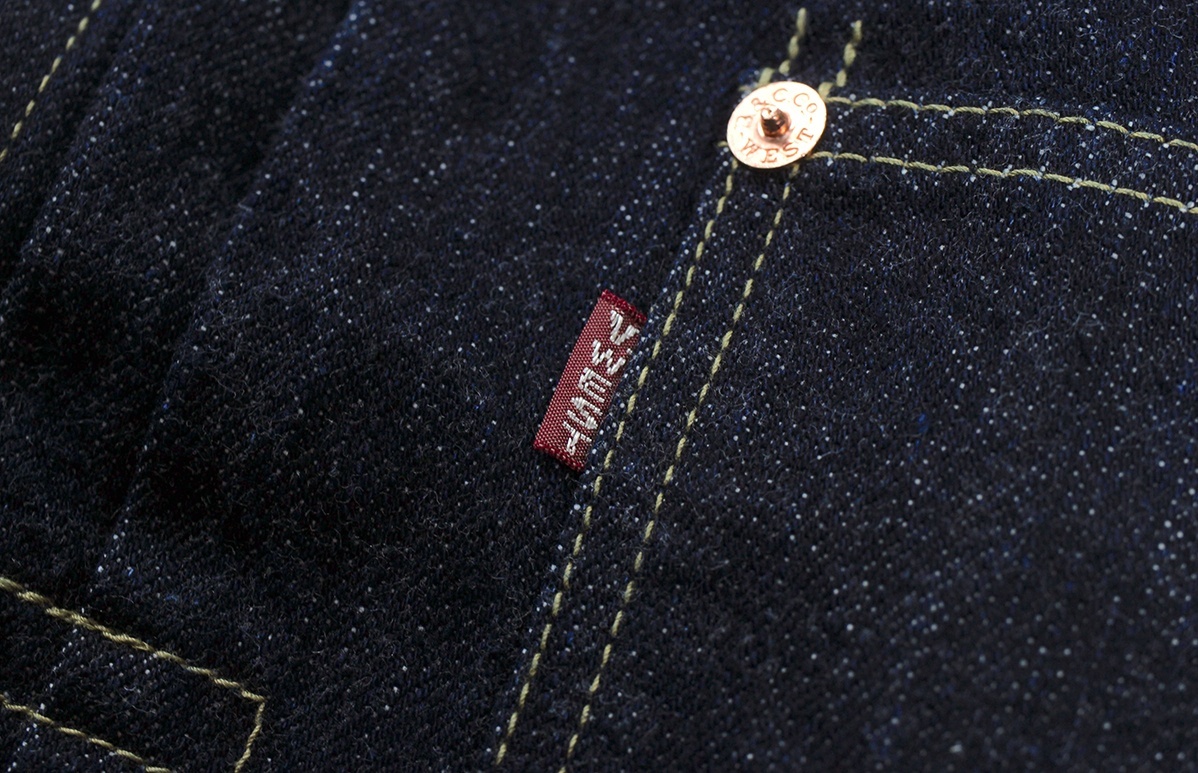 生地はあえて色落ちしづらい濃色のインディゴ染料に変更し、またオンス引き下げの制約を拒否し従来の縦糸の番手も太くする事で、結果若干オンスを引き上げた。