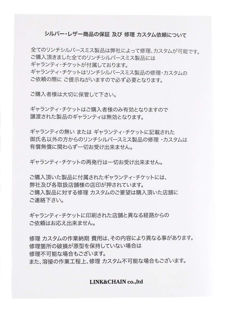 ご購入の際、購入店のみ有効となる「ギャランティーチケット」が発行されます。